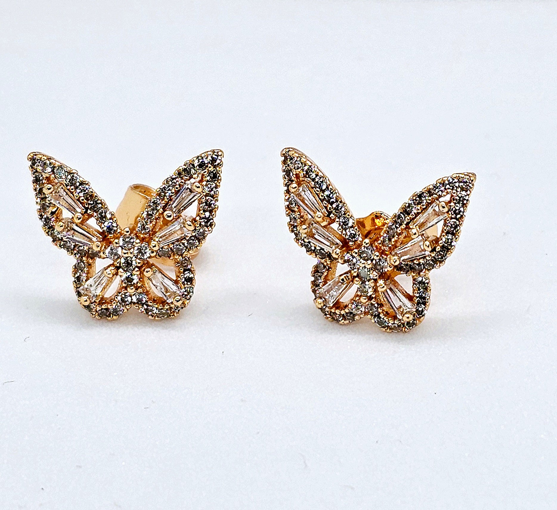 Introducing our stunning butterfly-shaped earrings, a luxurious staple piece designed to elevate any ensemble. Encrusted with dazzling cubic zirconia, these earrings offer a radiant sparkle. Available in both gold and silver finishes, they strike the perfect balance between minimalist elegance and high-end sophistication. Whether for a special occasion or everyday wear, these classy earrings are a must-have addition to your jewelry collection.